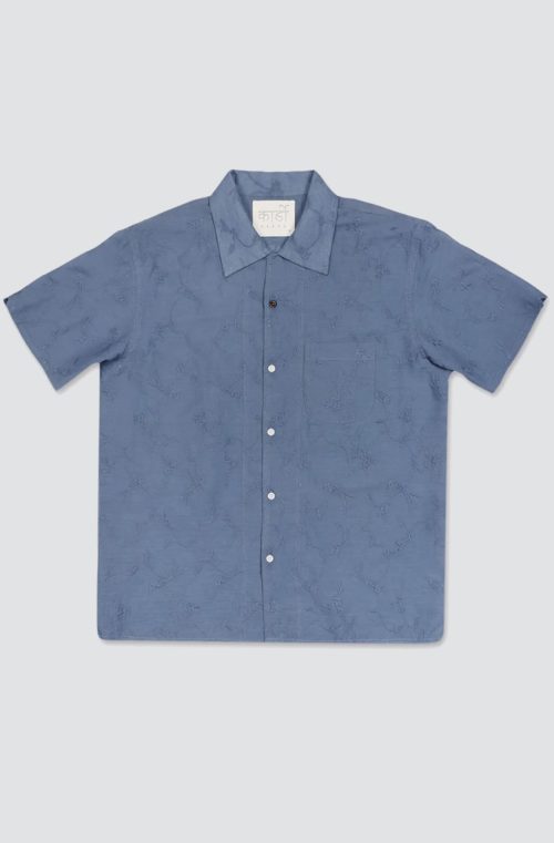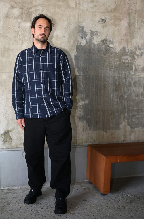 MHL Overall Shirt Graphic Check Cotton Linen Slate Blue