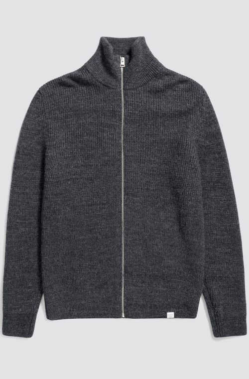 NORSE PROJECTS HAGEN Wool Cotton Rib Full Zip Jacket Dark grey melange