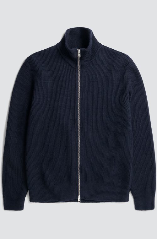 NORSE PROJECTS HAGEN Wool Cotton Rib Full Zip Jacket Dark navy