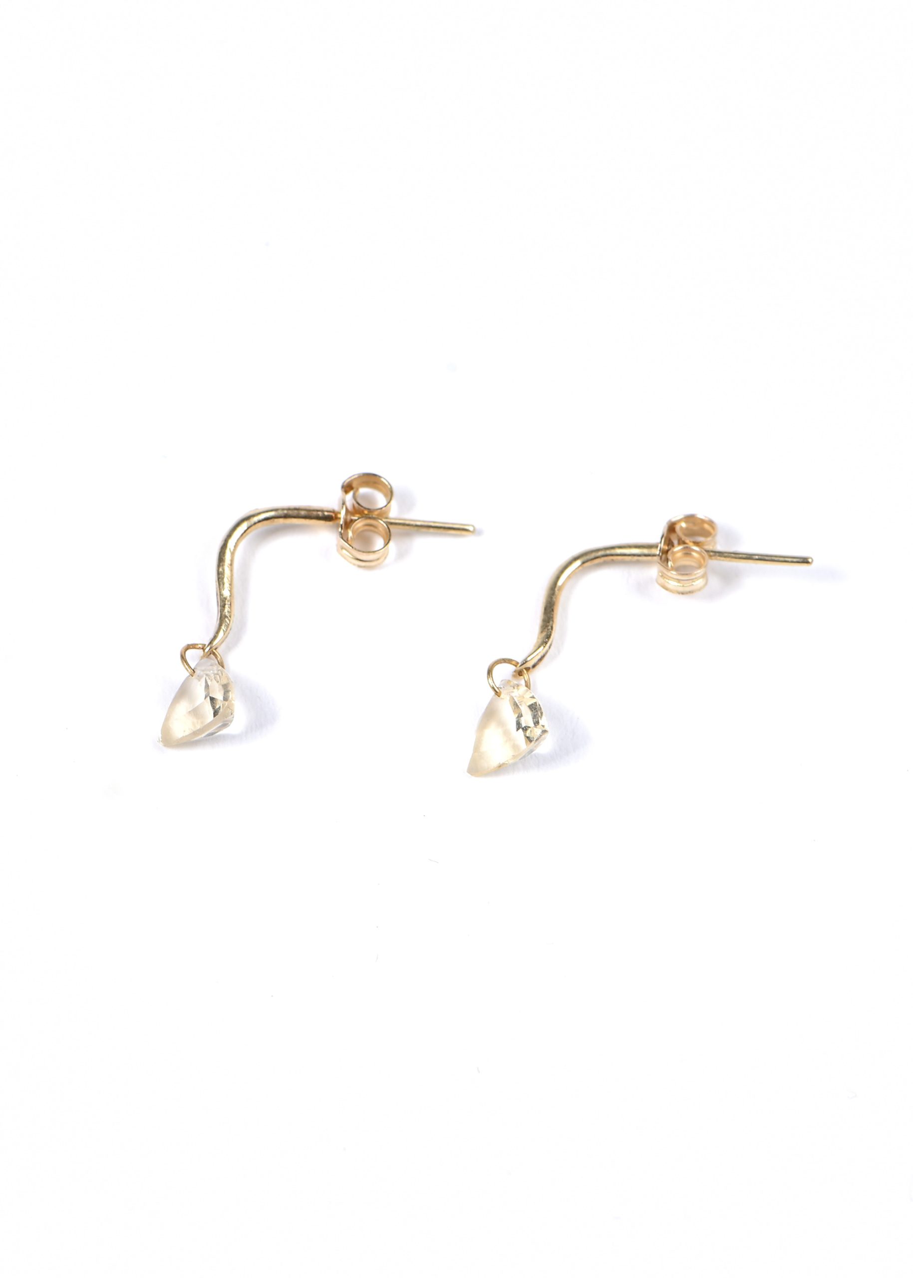 Réalisation : Trilo dormeuses en or 14 carats et citrines taille trillion. une paire de boucles d’oreilles minimale tout en lumière !
