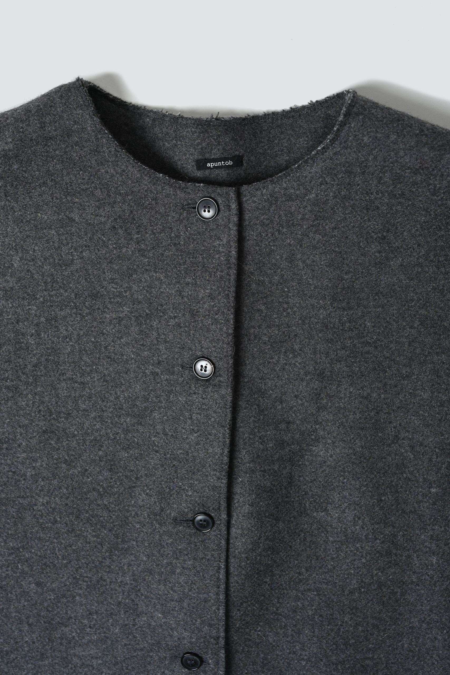 Details : Round-neck jacket with five buttons, kimono sleeves, center back seam, boxy cut. Relaxed fit.