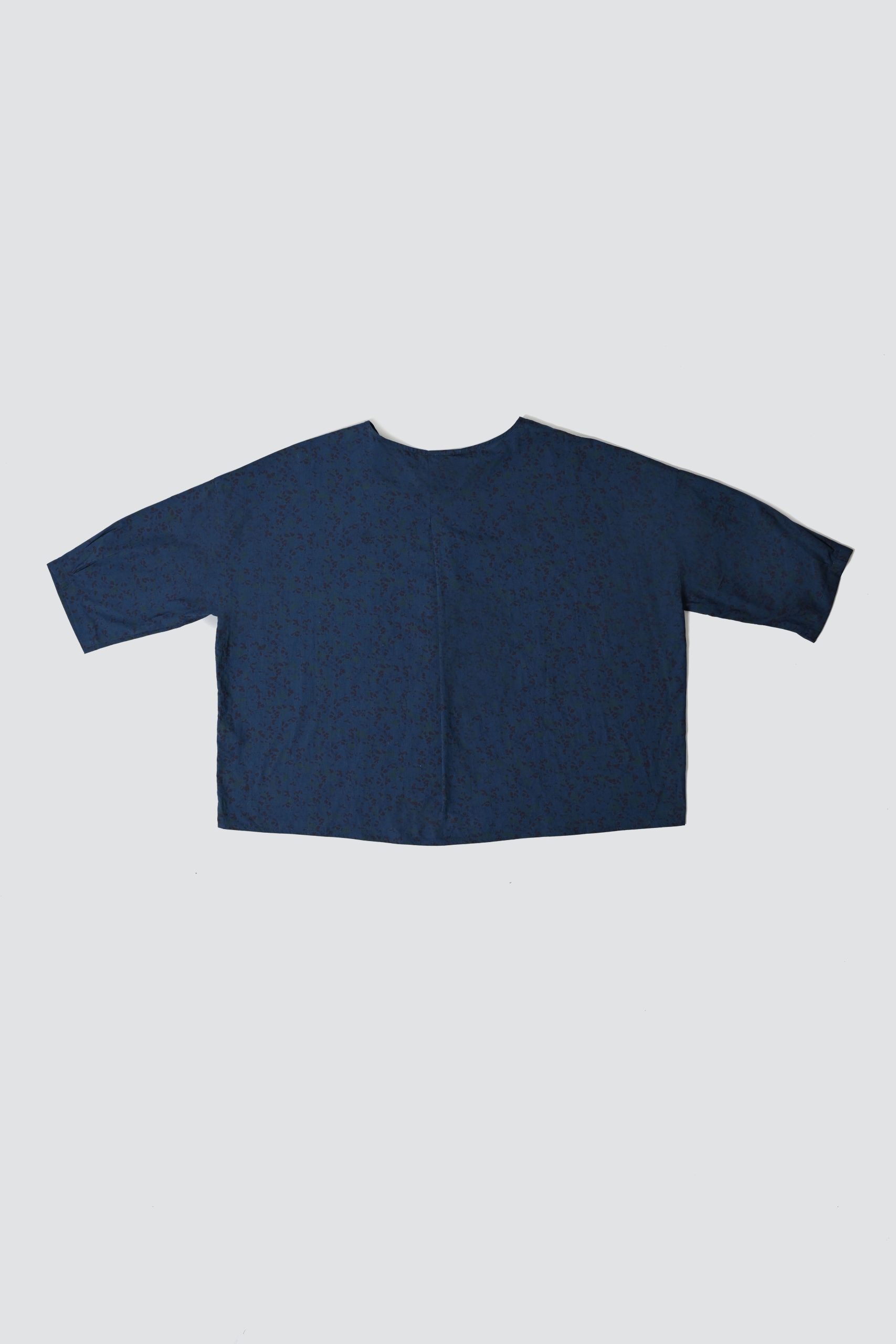 Details : Round neck blouse, three-quarter sleeves, rounded hem. Boxy cut, relaxed fit.