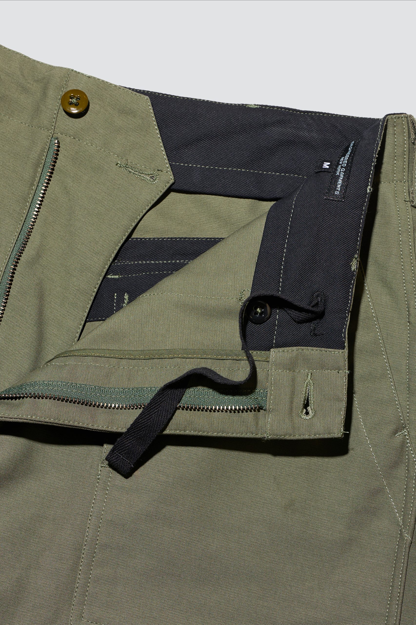 ENGINEERED GARMENTS FATIGUE Pant Khaki Cotton Ripstop — ENGINEERED GARMENTS FATIGUE Pant Khaki Cotton Ripstop ENGINEERED GARMENTS CAMP Shirt Dk Navy Cotton Broadcloth ENGINEERED GARMENTS CAMP Shirt Dk Navy Cotton Broadcloth —