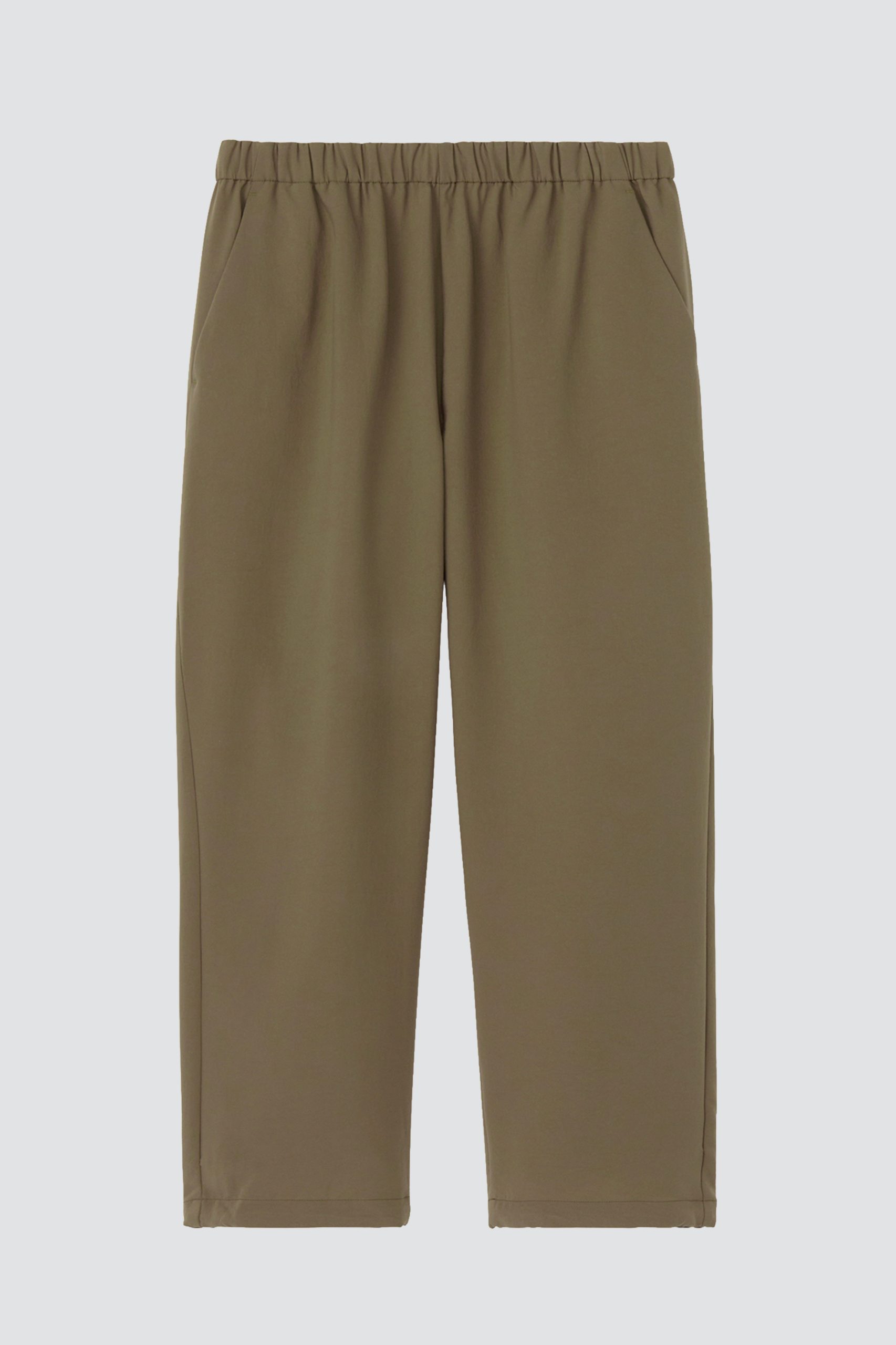 Detail : Trousers incorporating functional materials for the outdoors in a trendy style. The 2-layer softshell fabric is made of 100% mechanically stretch polyester with an extremely breathable and quick-drying knit structure. Features UV protection, tested to AS/NZS 4399, the Australian/New Zealand standard for sun protection clothing. Water-repellent, resistant to light rain. Distinctive wide and bold silhouette, adjustable with a drawstring at the hem. Ankle length (inner seam at the quarter point of the leg). The waistband has an elasticated and drawstring closure. A zippered security pocket is located inside the right waist pocket. The right back pocket also has a zipper. Recycled yarns are partially used to reduce environmental impact.