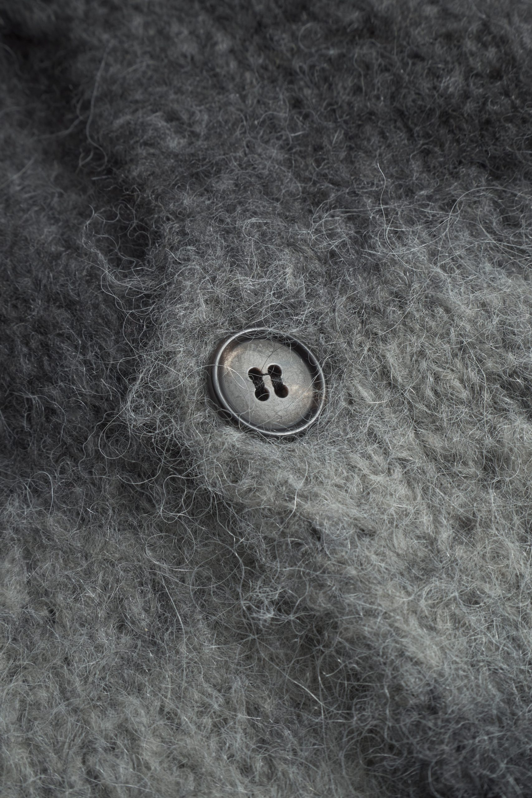 Réalisation : Cardigan coupe décontractée tricoté en laine d’alpaga dégradée, en point jersey. L’alpaga apporte une texture légère et aérienne, tandis que la laine apporte de la chaleur. Le fil est produit en Italie et fabriqué en Roumanie. Ce modèle est doté de manches montées entièrement façonnées et d’une patte de boutonnage à boutons en corne, ainsi que d’un ourlet, de poignets et d’un col en côte 1×1.