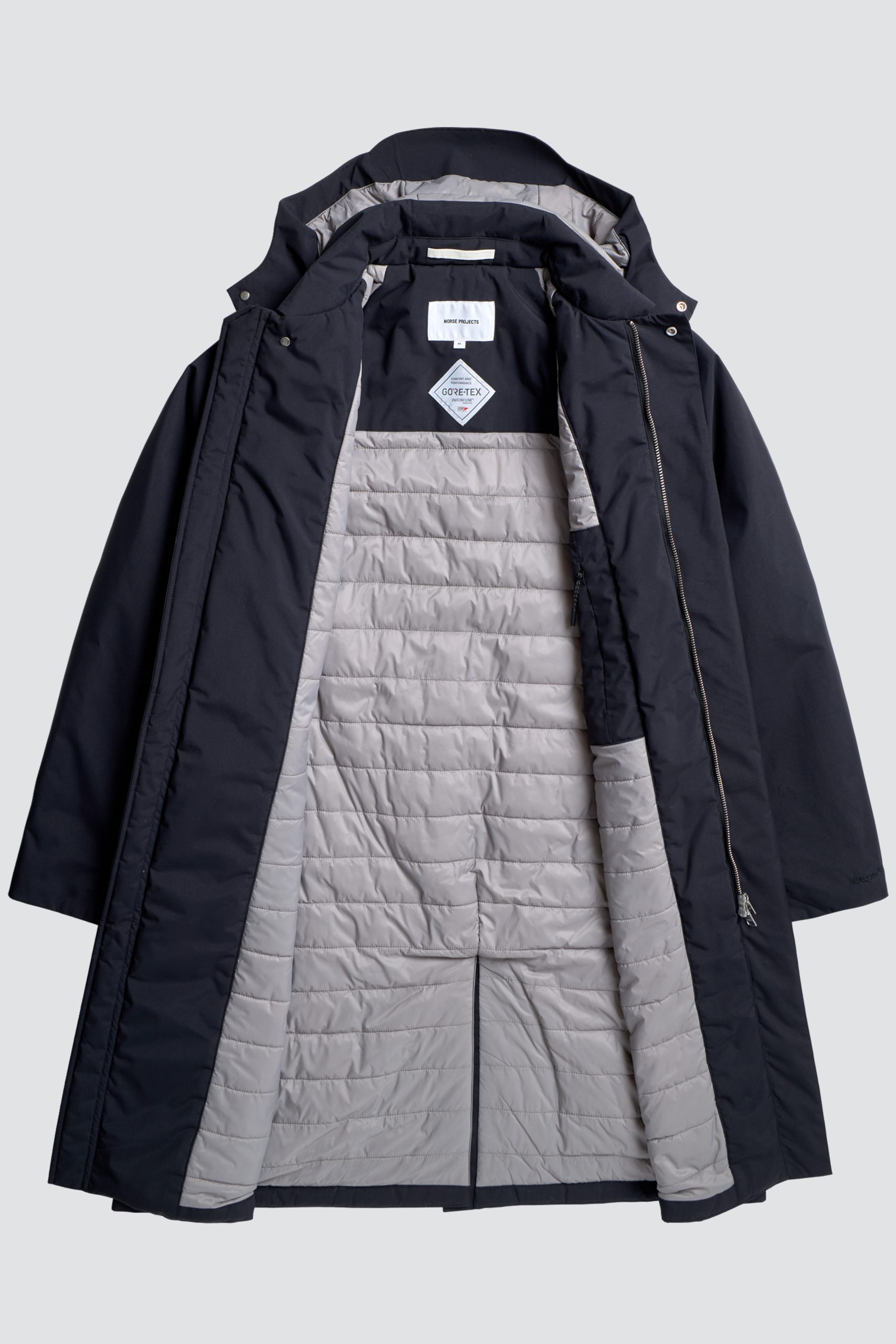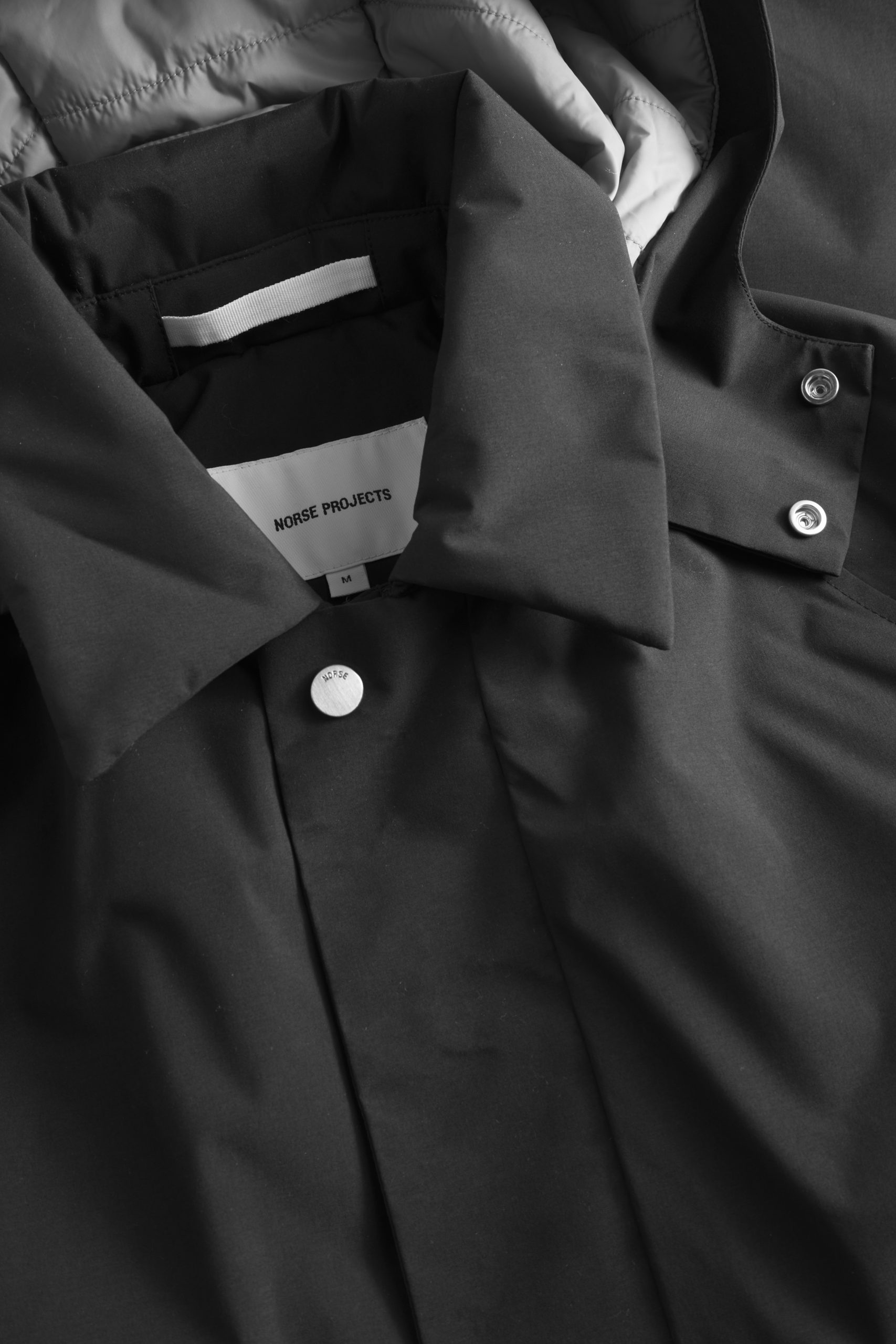 Réalisation : Un imperméable isolé, confectionné avec la technologie WINDSTOPPER® by GORE-TEX LABS, au toucher naturel. Ce modèle présente une coupe légèrement oversize et des manches raglan. Il est doté d’une isolation en fibres synthétiques, d’une capuche amovible, de poches-tempête doublées de laine, d’une poche intérieure zippée, d’aérations sous les bras, d’une fente d’aération au dos et d’un logo brodé ton sur ton aux poignets et au dos.