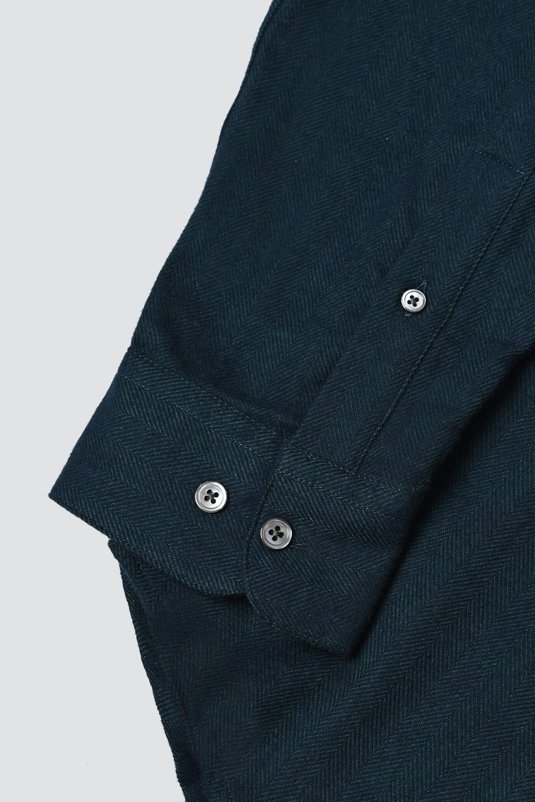 Classic collar, long sleeves, chest pocket, mother-of-pearl buttons
