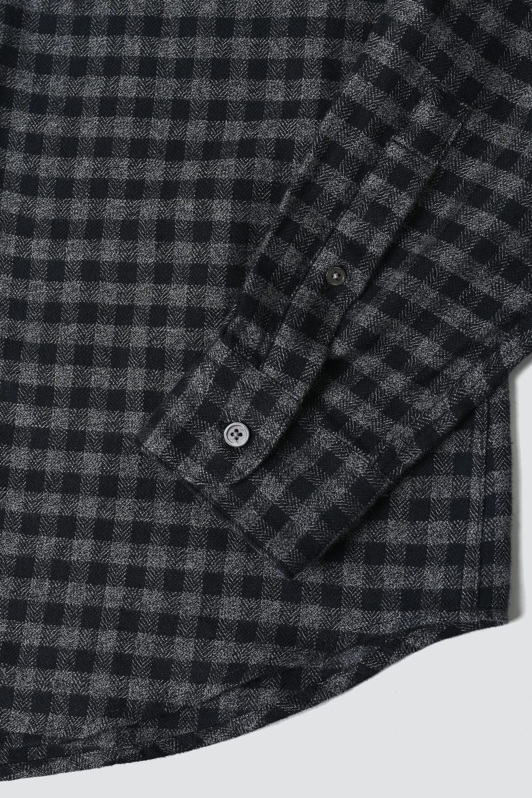 Classic collar, long sleeves, chest pocket, mother-of-pearl buttons