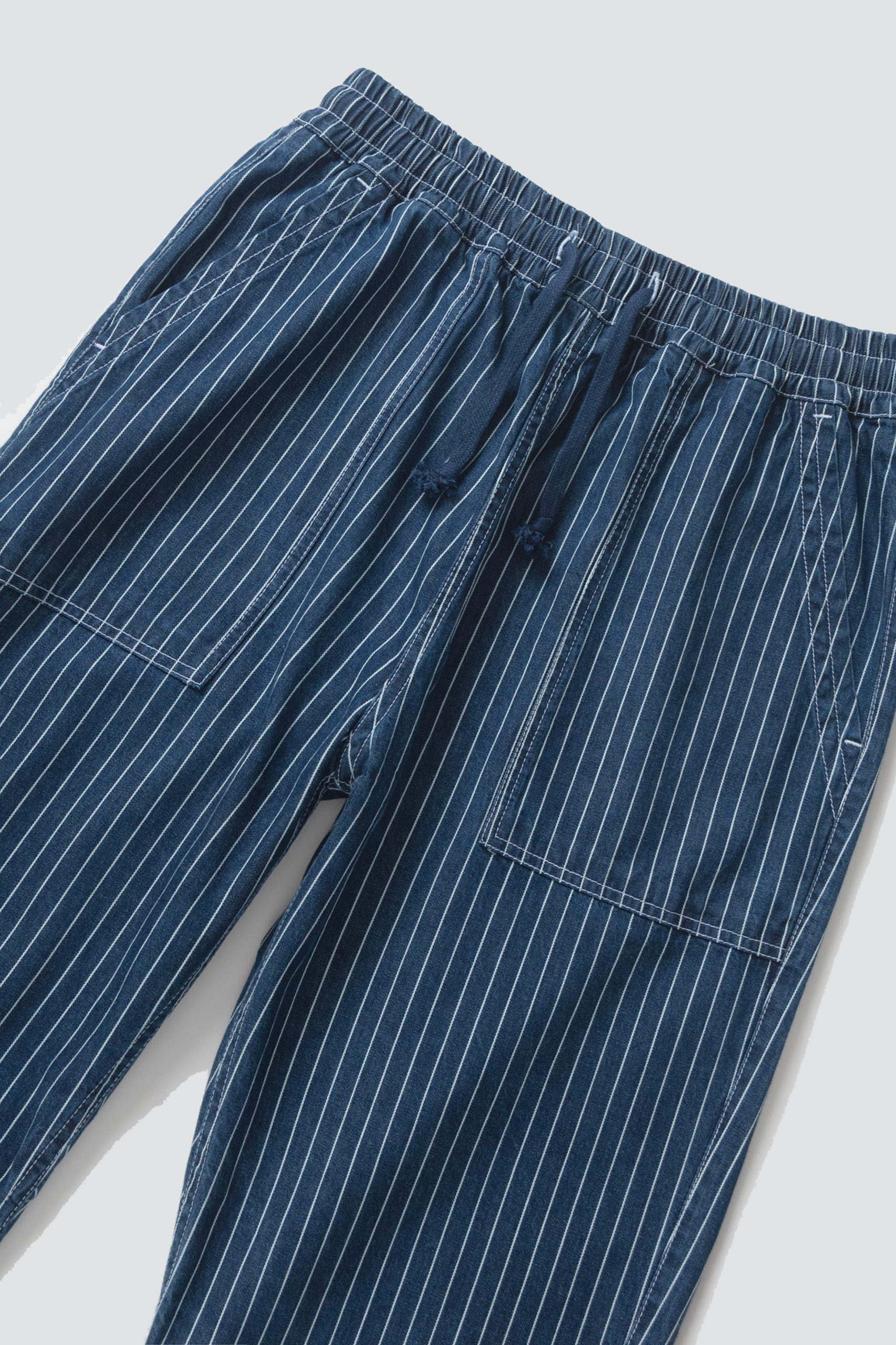 Réalisation : Coupe ample et confortable, motif stripes 100 % denim de coton Coupe décontractée Taille ajustable par cordon de serrage 4 poches