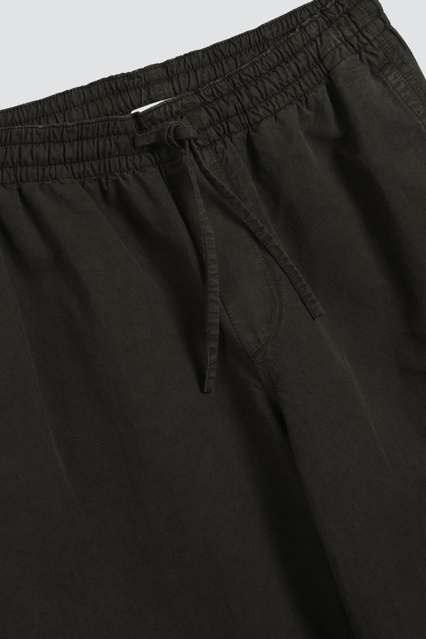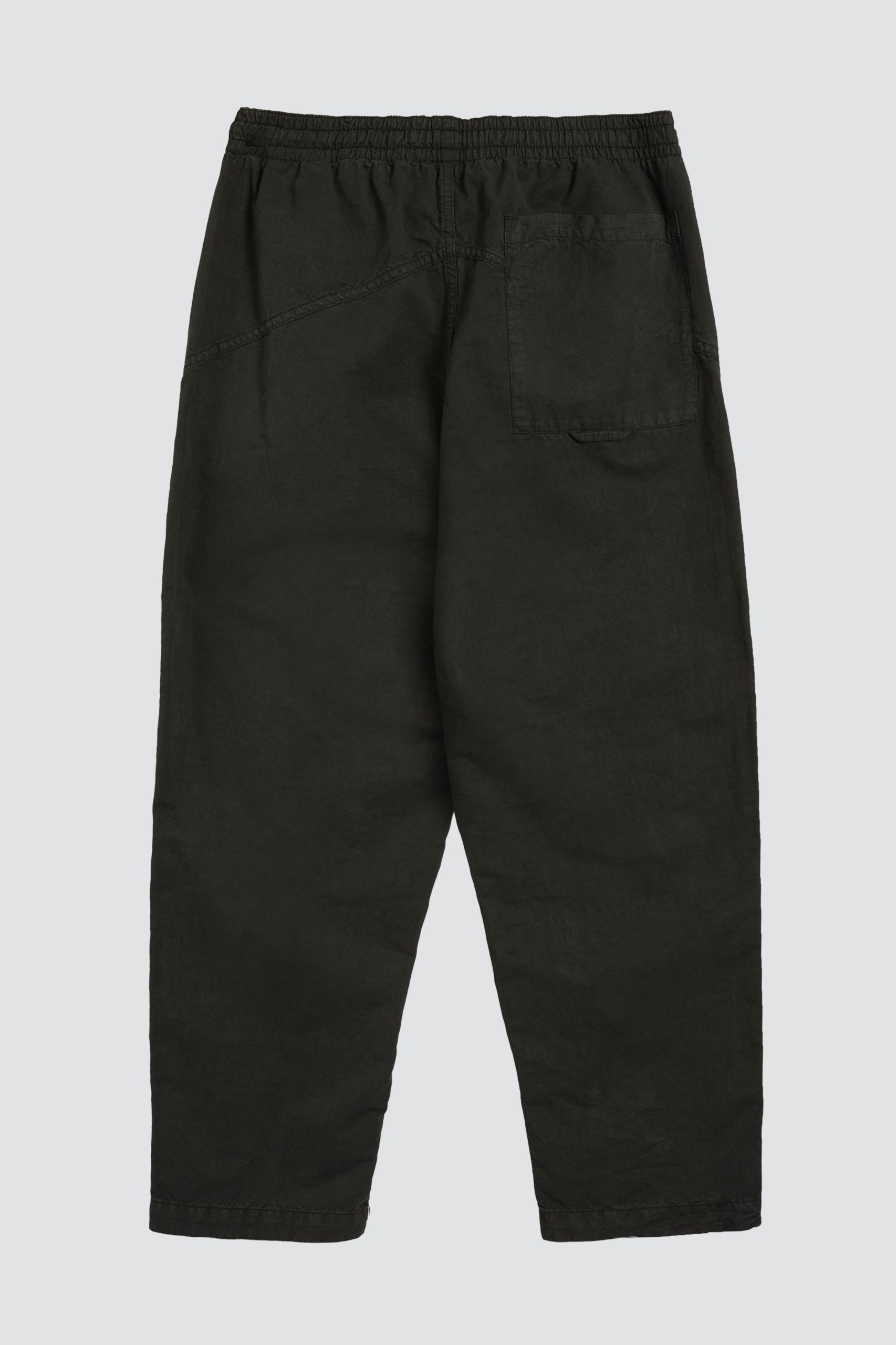 Réalisation : Pantalon fuselé à cordon de serrage. Mélange de coton et de lin. Teint en pièce. Deux poches latérales. Poche plaquée à l’arrière. Ceinture élastiquée à cordon de serrage. Fausse braguette à coutures apparentes. Coupe décontractée.