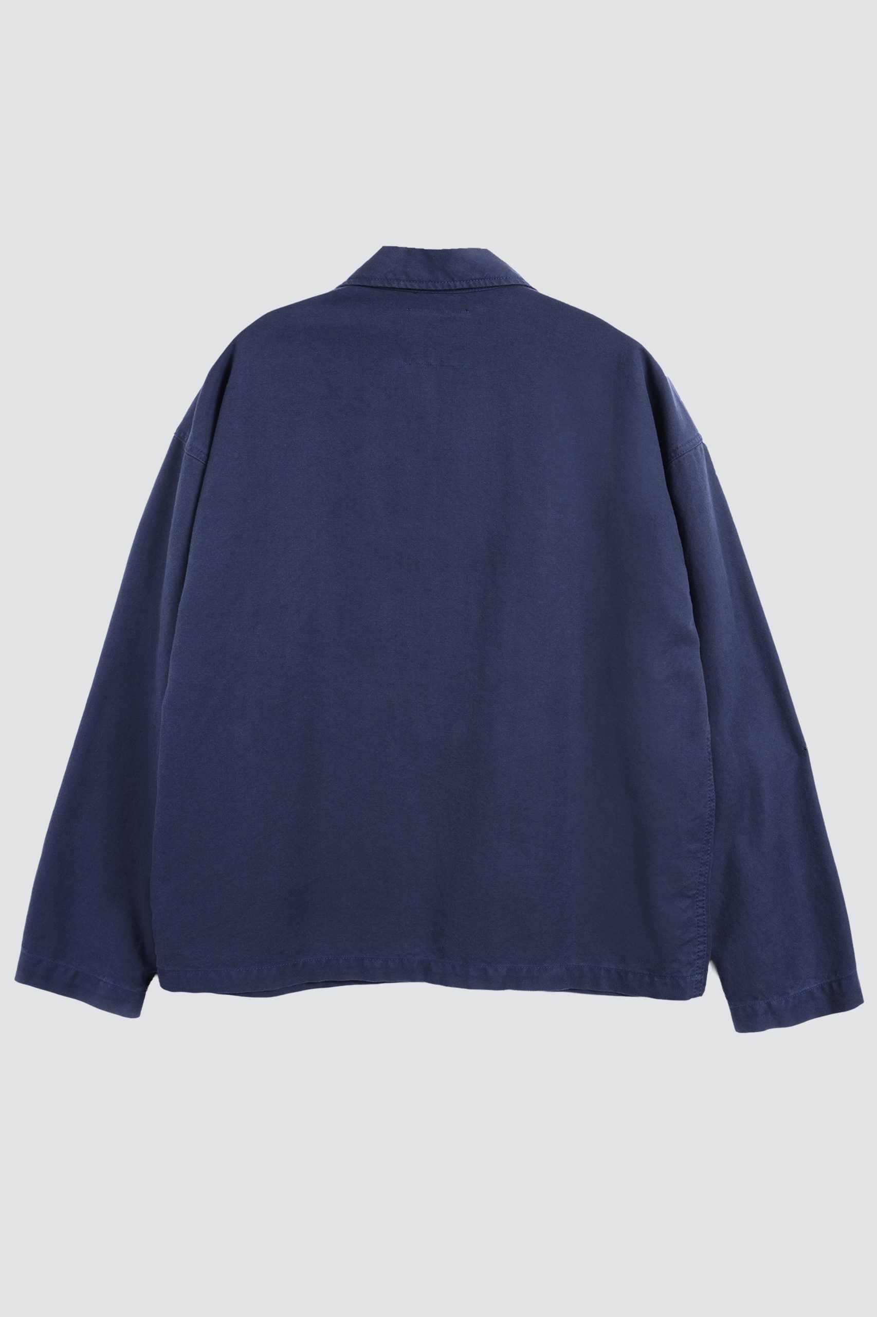 Réalisation : Veste carrée en sergé. Mélange de Tencel et de coton. Micro-toile teinte en pièce. Poches plaquées basses. Fermeture boutonnée métallique sur le devant. Épaules tombantes. Coupe décontractée